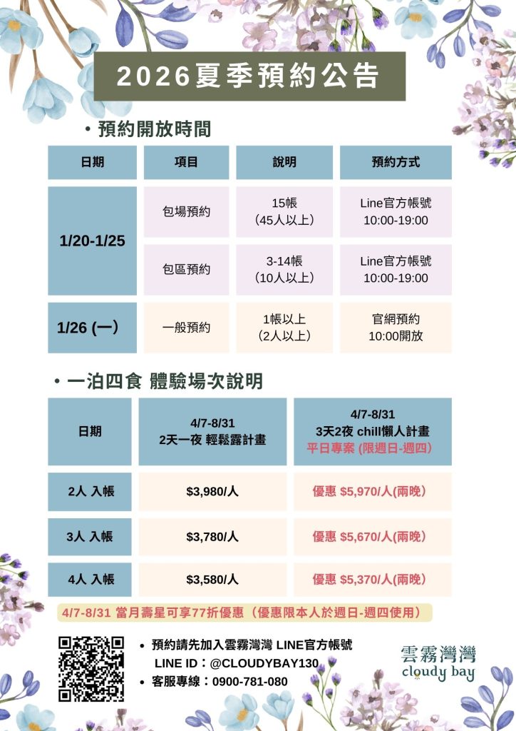 2026夏季預約說明 - 雲霧灣灣 Cozy Camping